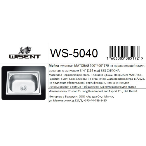 WS-5040 Мойка из нерж. стали МАТОВАЯ WISENT (без сифона) (10)