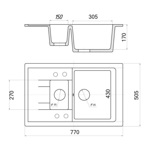 Мойка кухонная композитная предназначена для использования в бытовых или общественных помещениях в кухонных комплектах и устанавливаются на столешницу.