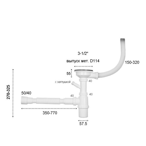 Сифон WISENT с выпуском 3-1/2" укомплектован прямоугольным и круглым переливом. Изготовлен с уменьшенным накопителем 1-1/2*40мм. Предназначен для кухонной керамогранитной мойки с одной чашей. Производитель: ИТАЛИЯ.