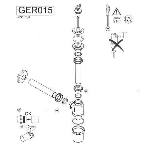 Сифон для умывальника с нержавеющей решеткой и винтом.