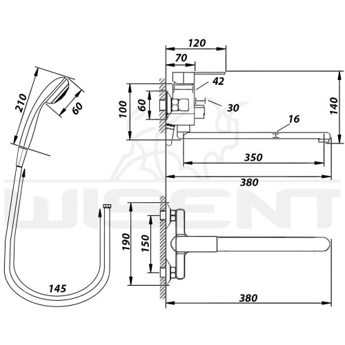 Смеситель для ванной однорычажный с длинным изливом WISENT WP22006 ;