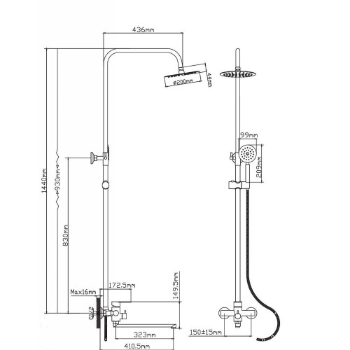 WP735-003-2 WISENT Душевая система с смесителем и тропическим душем