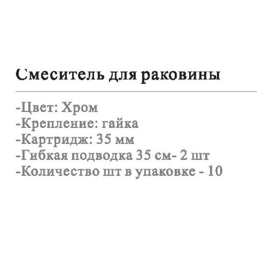 Комплектация: смеситель, крепление, гибкая подводка (длина 35 см)