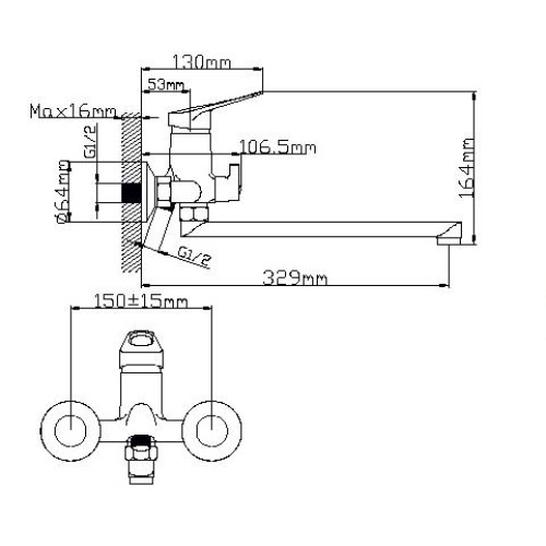 Смеситель для ванной однорычажный с длинным изливом WISENT WP22213