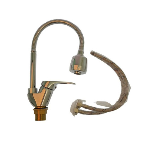 Практичный высокий смеситель для кухонной мойки с гибким полужёстким носиком и аэратором с двумя режимами.